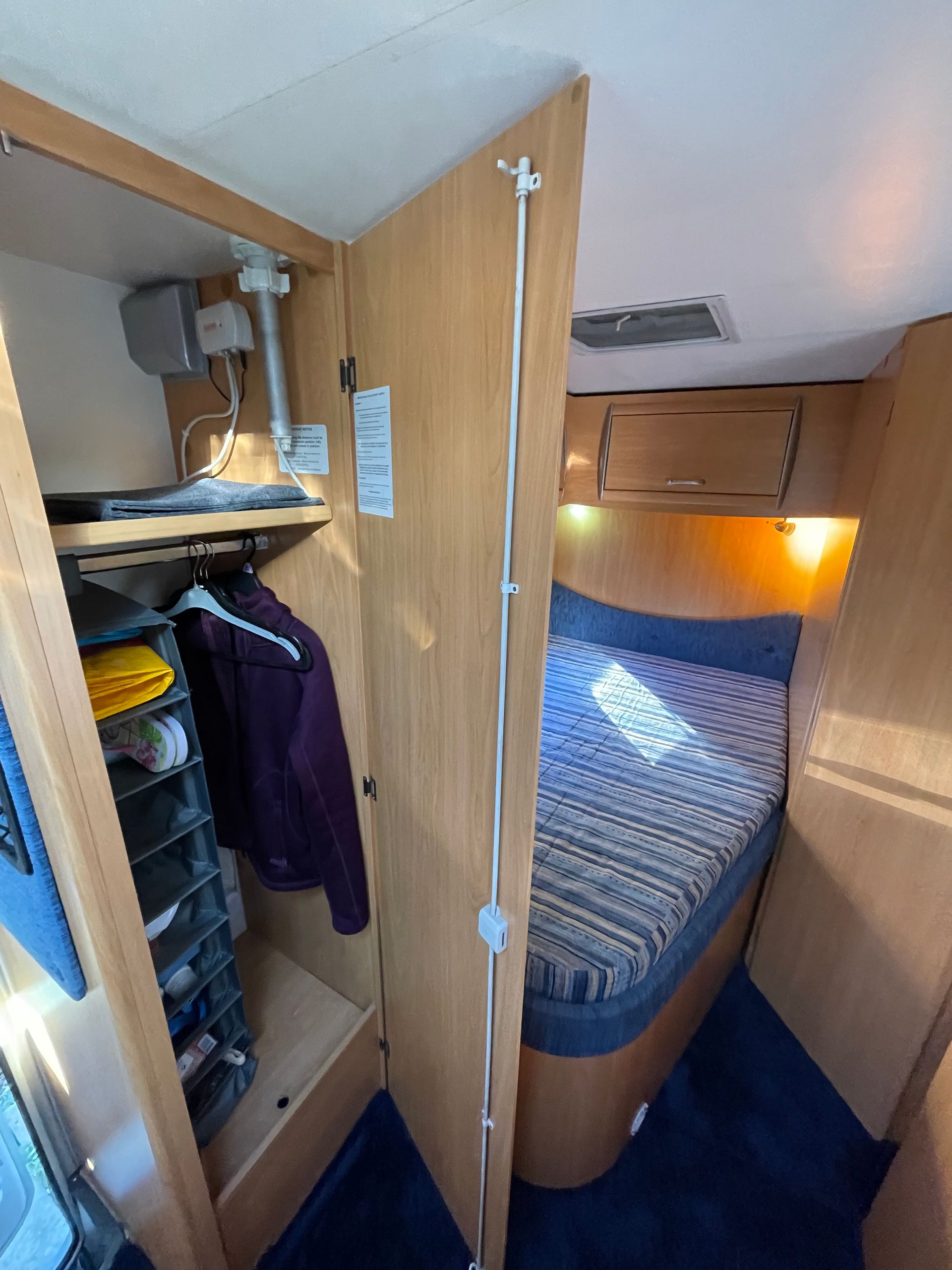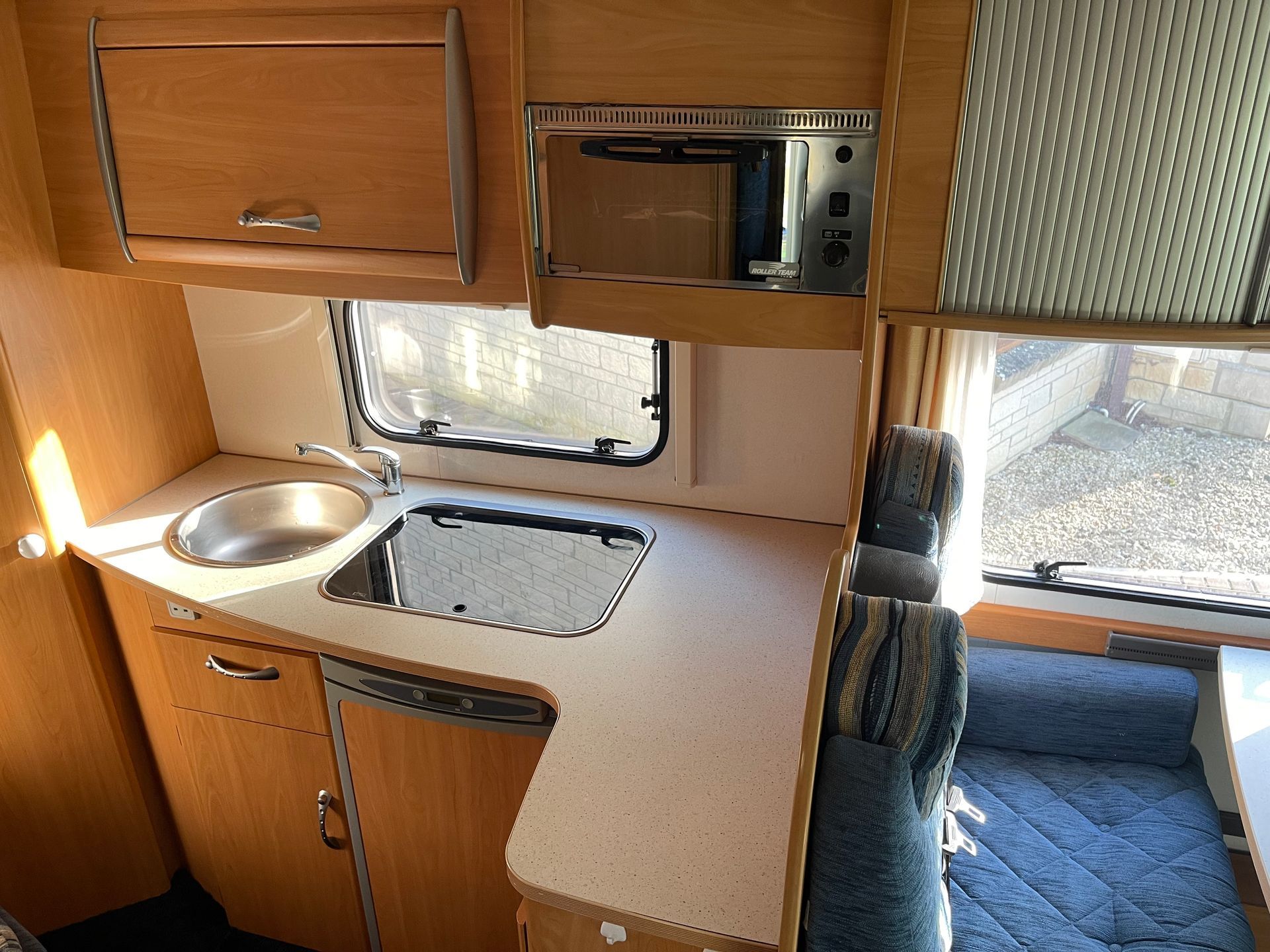 There is plenty of storage including a wardrobe and cupboards, plus large under-bed locker for storing bulky items. An optional, and at extra cost, drive-away air-beam awning can be added to your booking.
