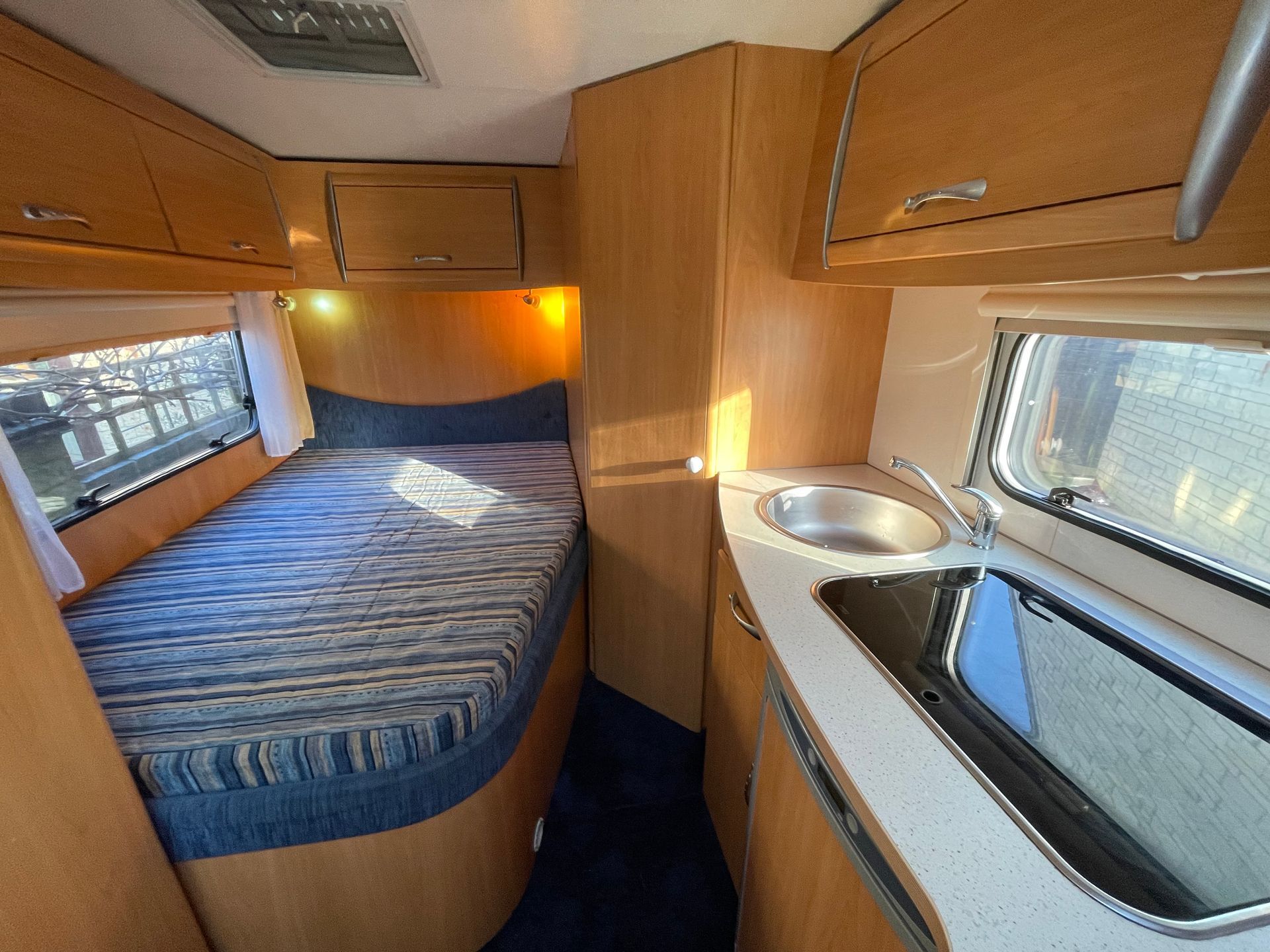Flash is well laid out for families, with an integrated kitchen and living area, good sized bathroom with a shower, plus a comfortable fixed bed and a further double bed which can be converted if required. The kitchen has a sizable fridge with a small freezer compartment, a three-ring gas hob, and a small gas grill.
